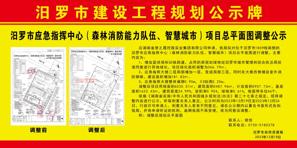 汨罗市应急指挥中心( 森林消防能力队伍、智慧城市)项目总平面图调整公示