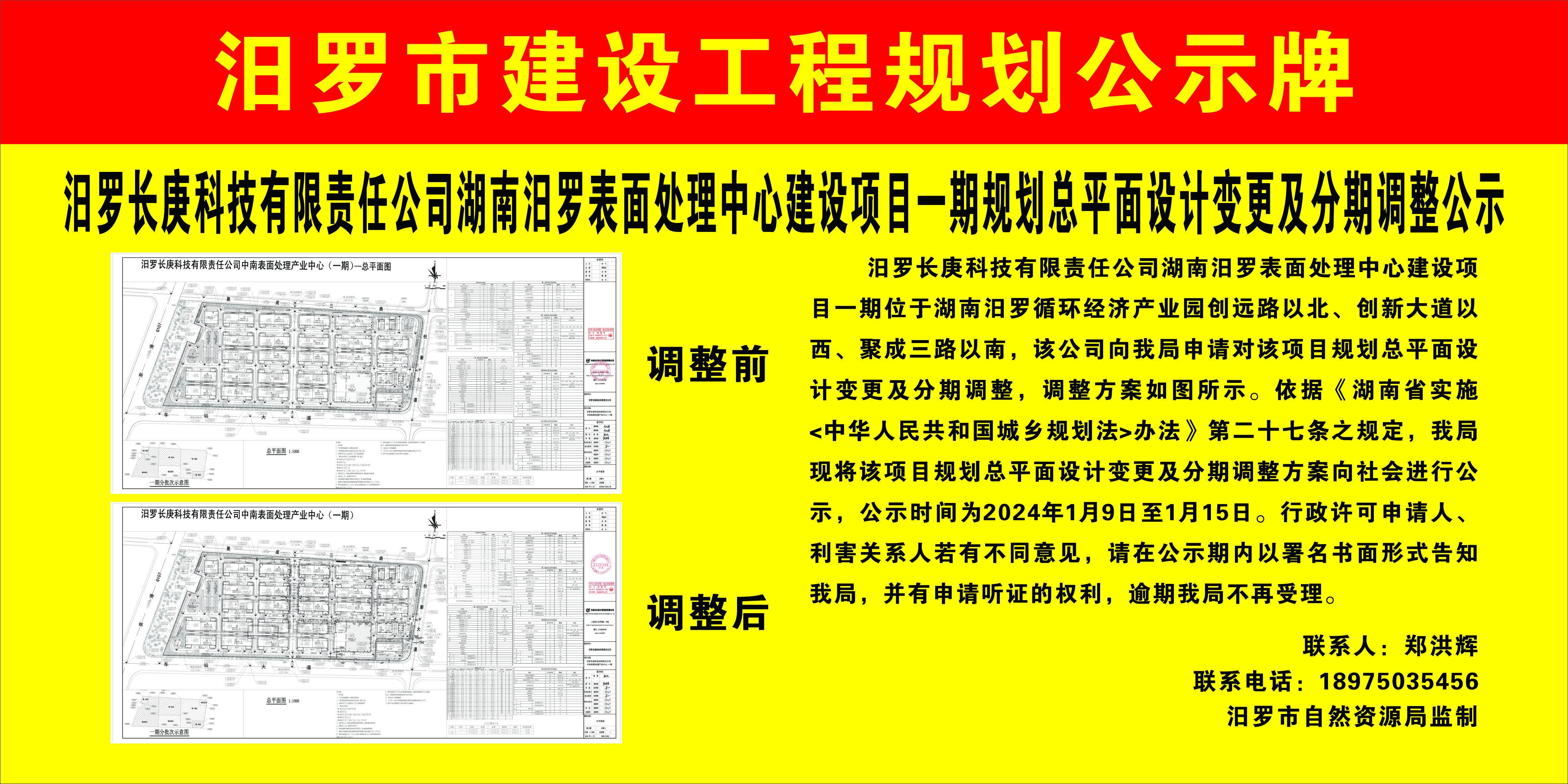 汨罗长康科技有限责任公司湖南阳罗表面处理中心建设项目一期规划总平面设计变更及分期调整公示