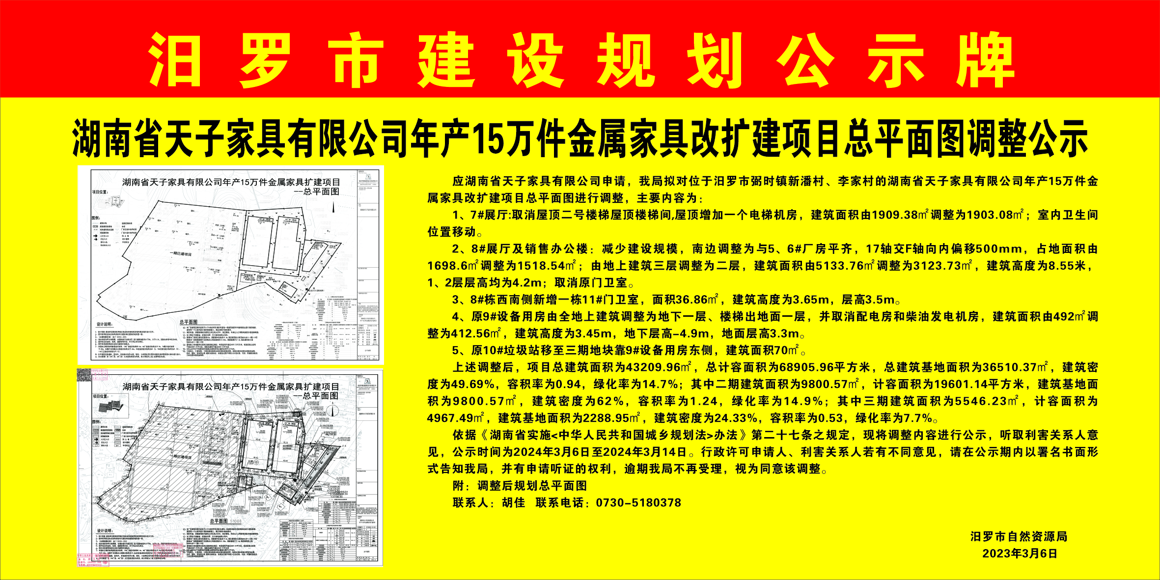 湖南省天子家具有限公司年产15万件金属家具改扩建项目总平面图调整公示