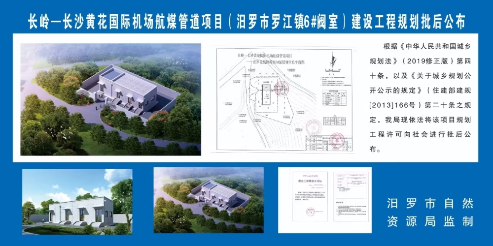 长岭-长沙黄花国际机场航煤管道项目(汨罗市罗江镇6#阀室)项目建设工程规划批后公布