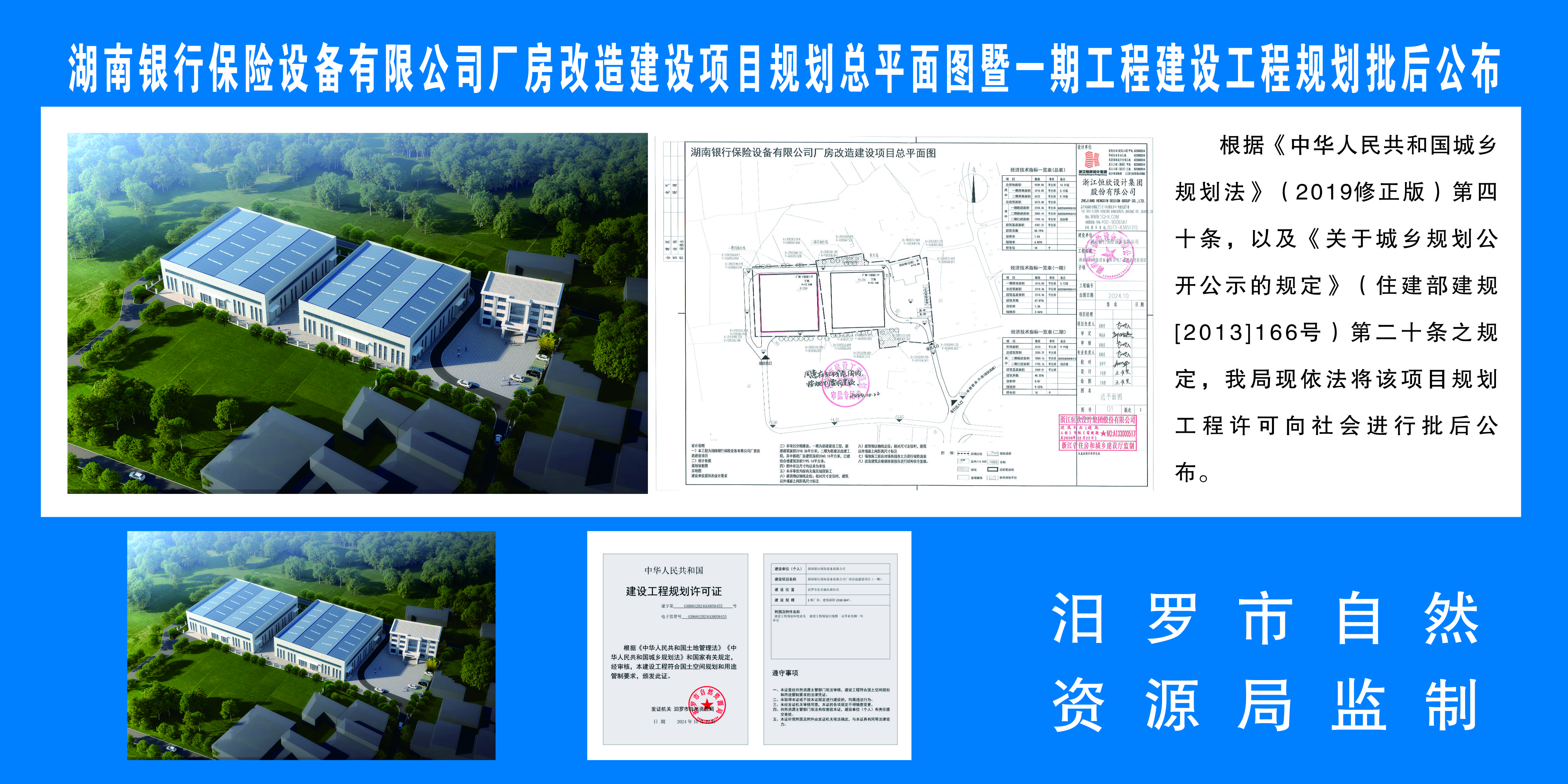 湖南银行保险设备有限公司厂房改造建设项目规划总平面图暨一期工程项目建设工程规划批后公布