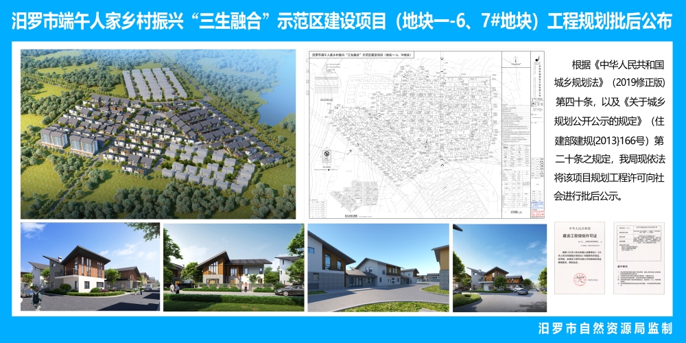 汨罗市端午人家乡村振兴“三生融合”示范区建设项目(地块一-6/7#地块)工程规划批后公布