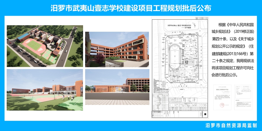 汨罗市武夷山壹志学校建设项目工程规划批后公布