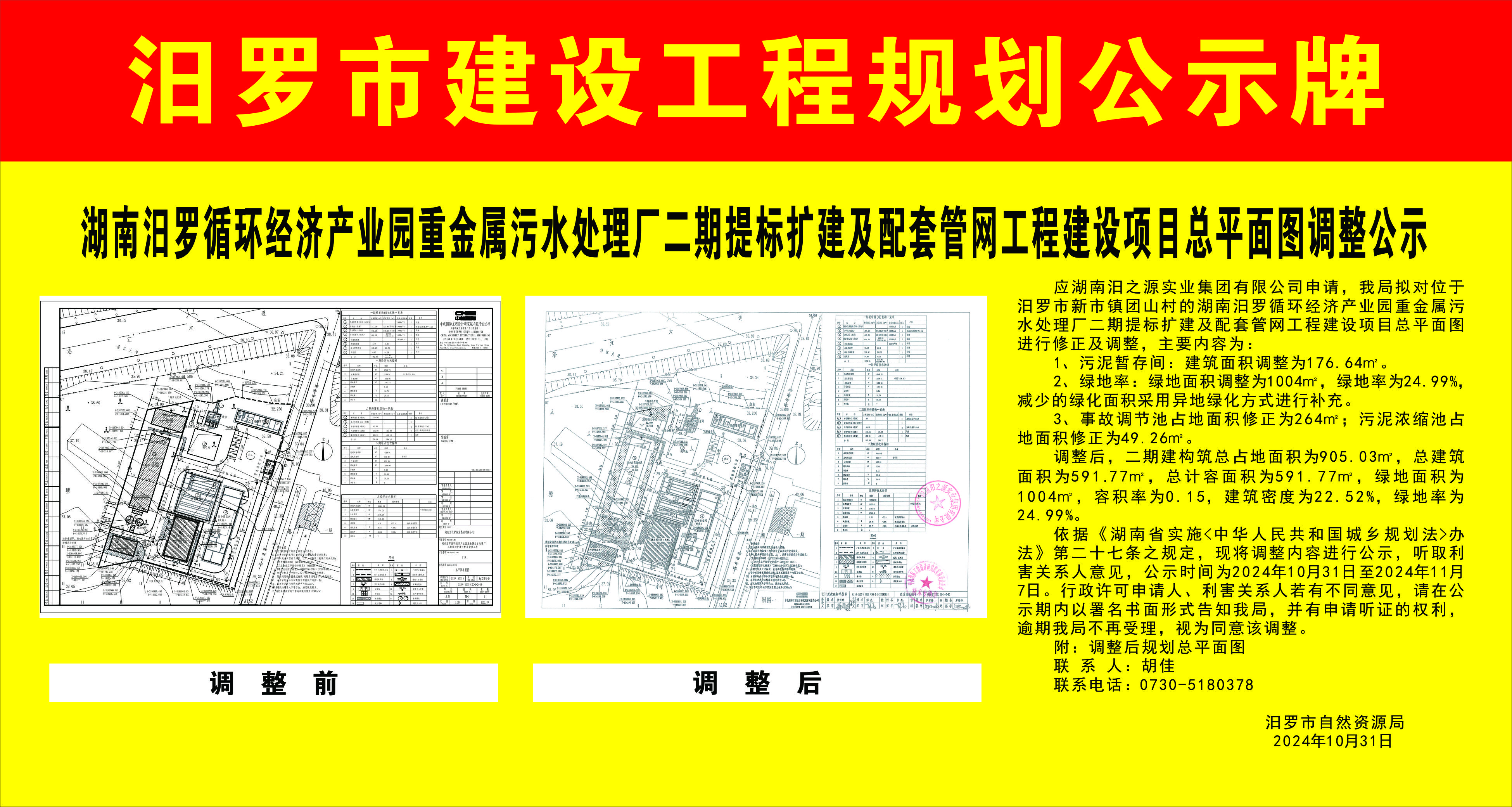 湖南汨罗循环经济产业园重金属污水处理厂二期提标扩建及配套管网工程建设项目总平面图调整公示