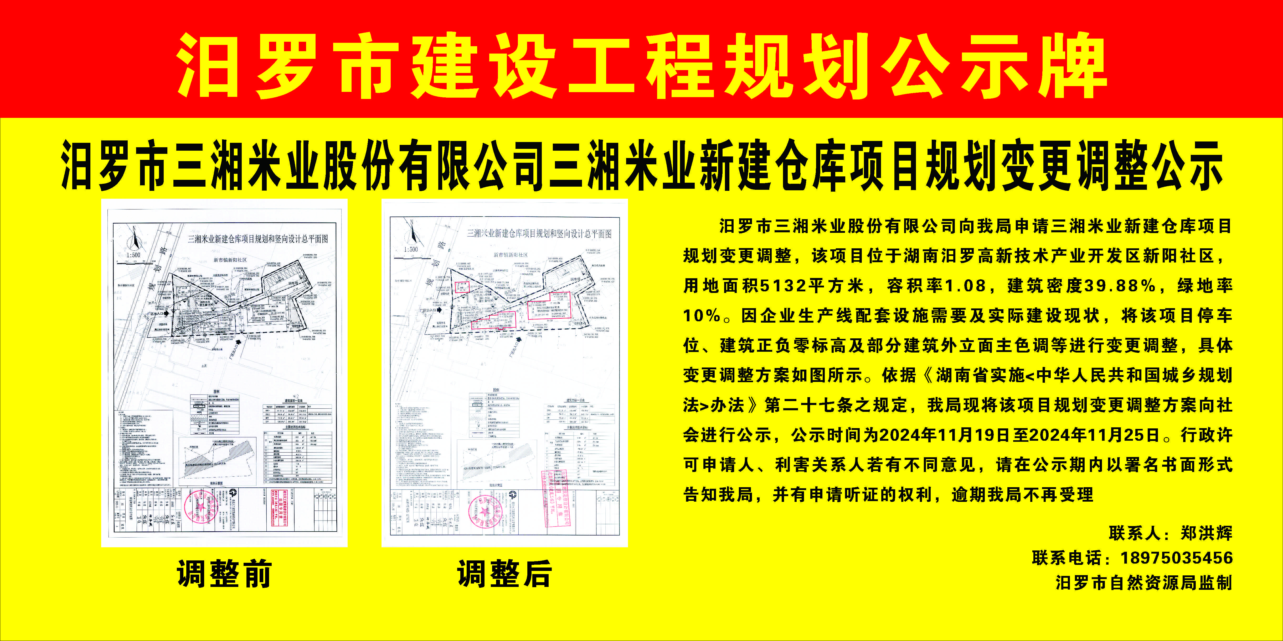 汨罗市三湘米业股份有限公司三湘米业新建仓库项目规划变更调整公示