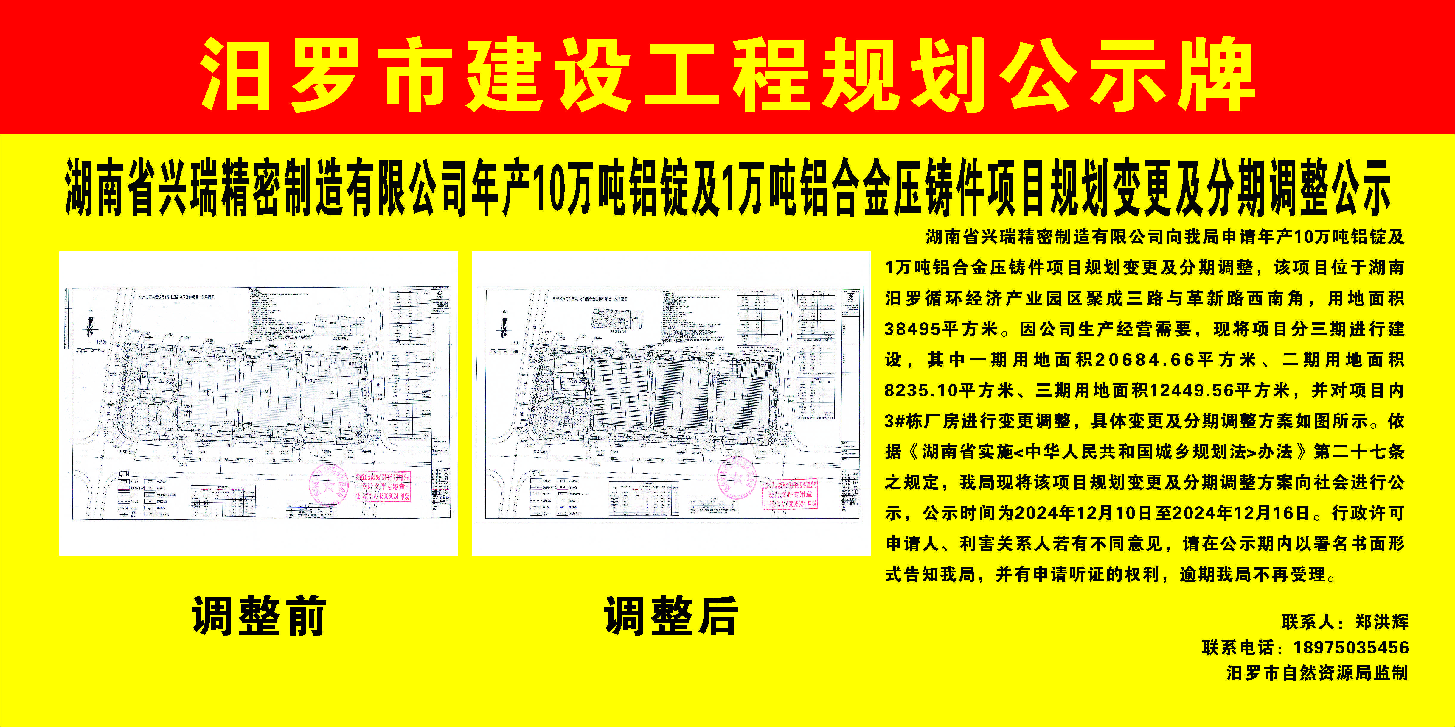 湖南省兴瑞精密制造有限公司年产10万吨铝锭及1万吨铝合金压铸件项目规划变更及分期调整公示