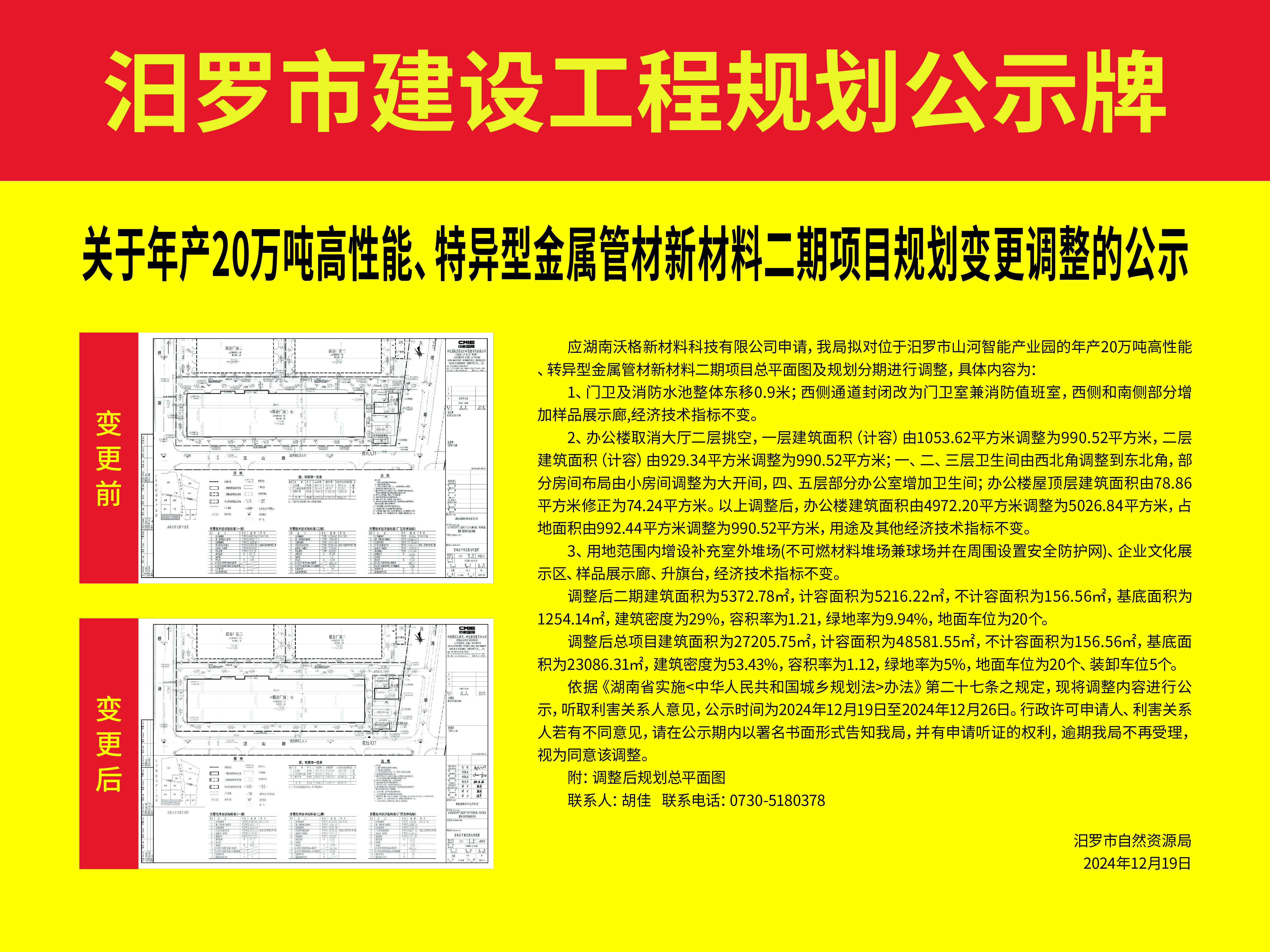 关于年产20万吨高性能、特异型金属管材新材料二期项目规划变更调整的公示