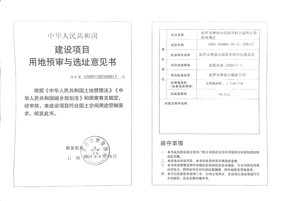 汨罗市神鼎山镇新开村公益性公墓建设项目用地预审与选址意见书