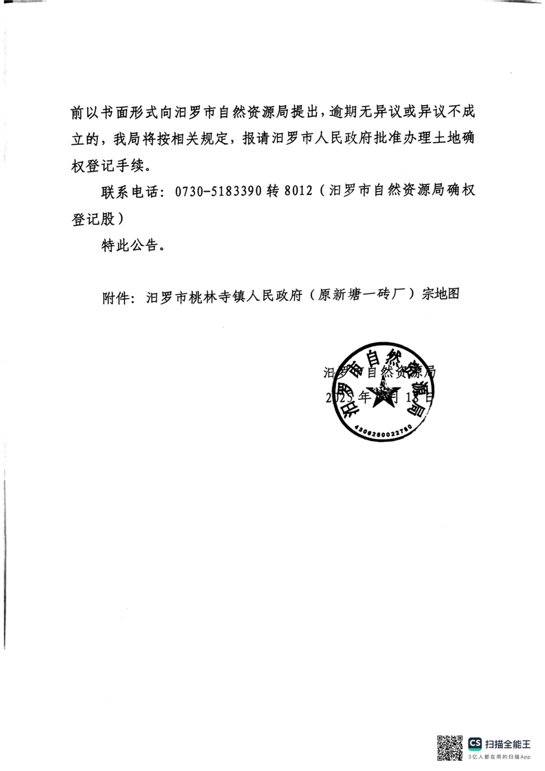 关于确认汨罗市桃林寺镇人民政府(原新塘一砖厂)国有建设用地使用权的公告