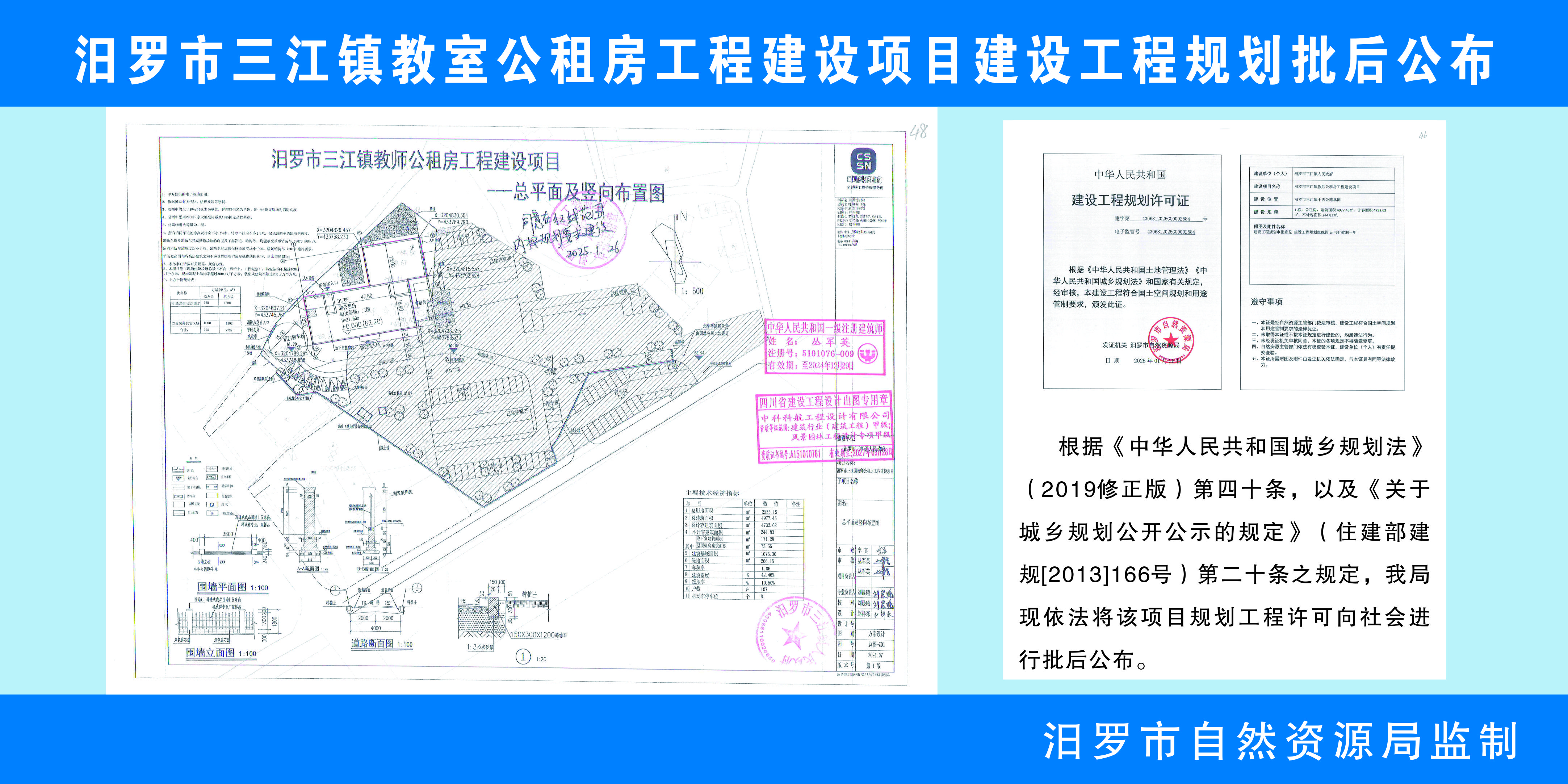 汨罗市三江镇教室公租房工程建设项目建设工程规划批后公布