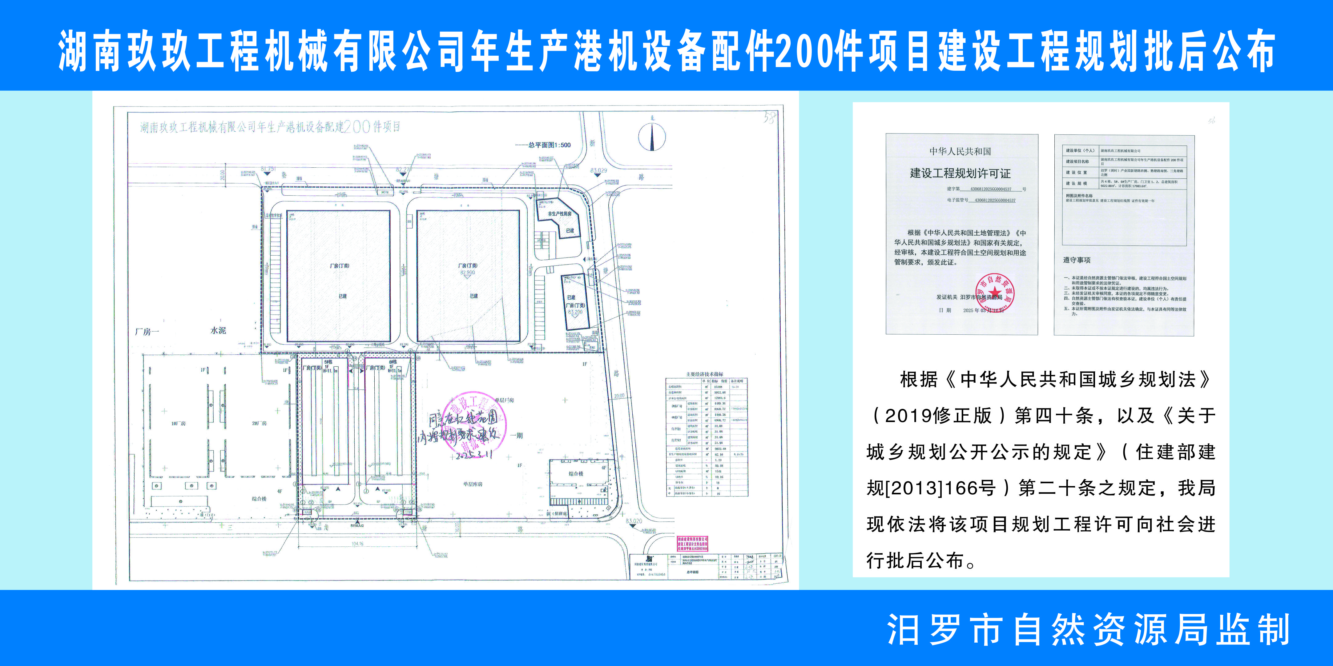 湖南玖玖工程机械有限公司年生产港机设备配件200件项目建设工程规划批后公布