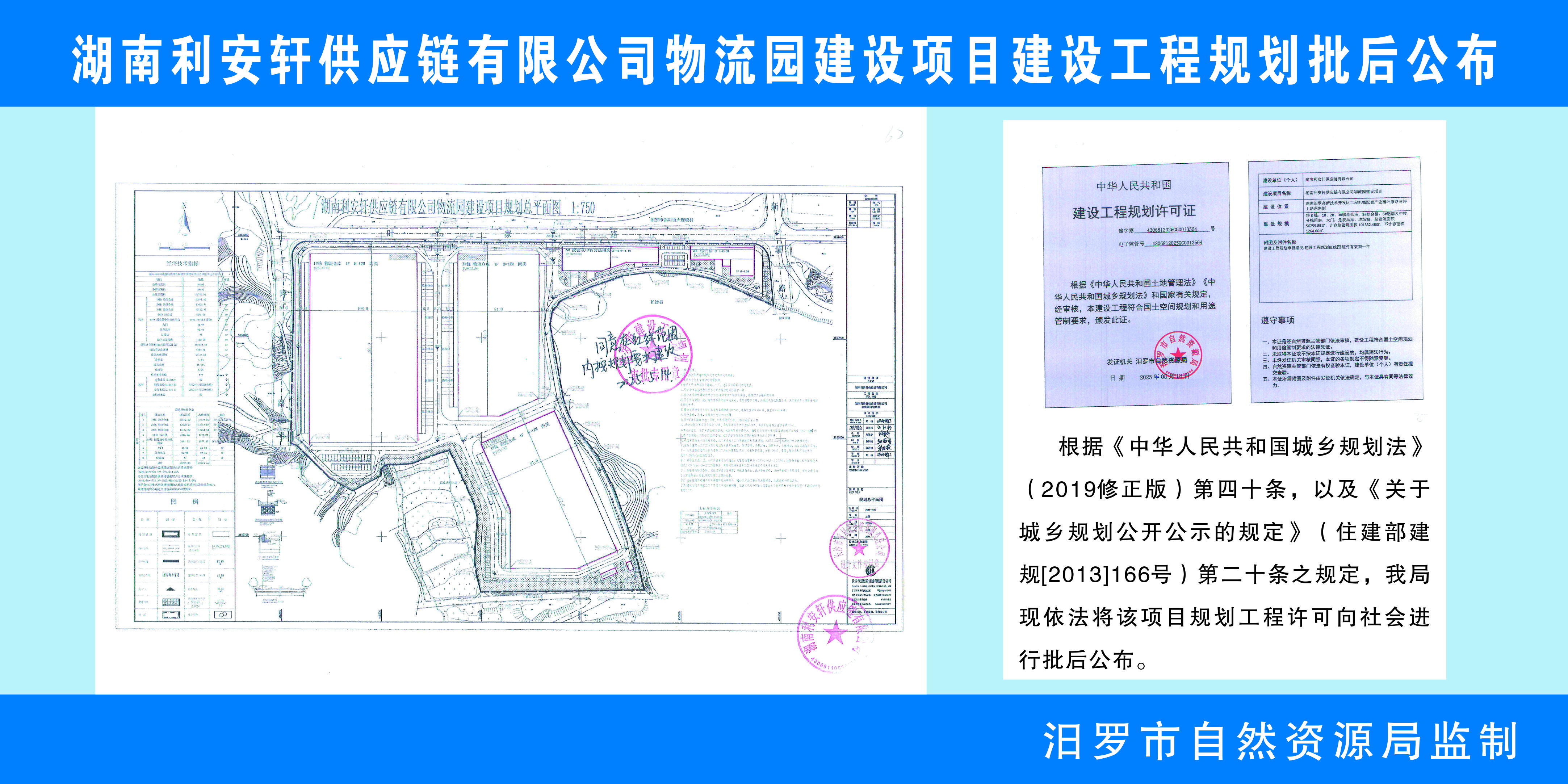 湖南利安轩供应链有限公司物流园建设项目建设工程规划批后公布