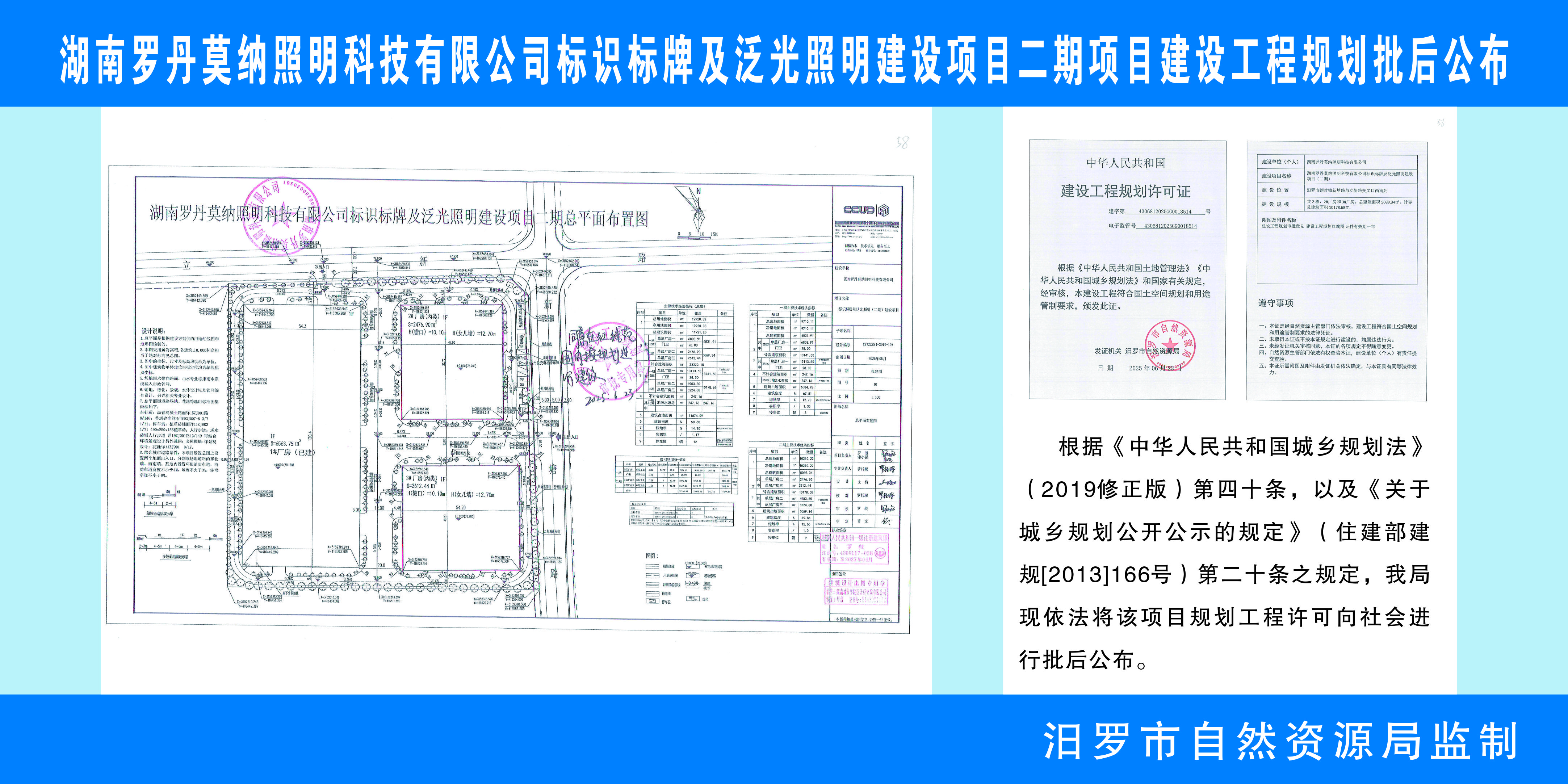 湖南罗丹莫纳照明科技有限公司标识标牌及泛光照明建设项目二期项目建设工程规划批后公布