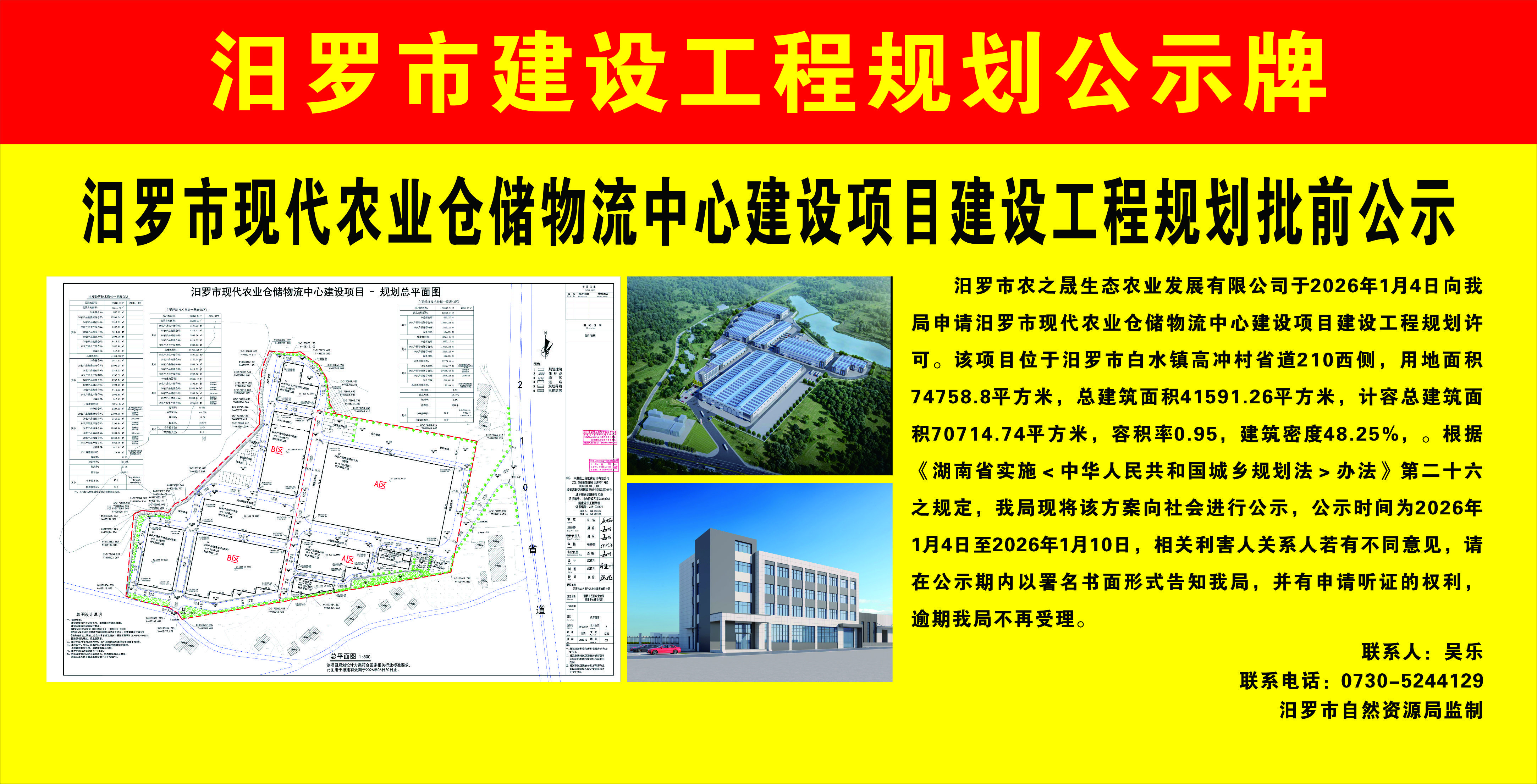 汨罗市现代农业仓储物流中心建设项目建设工程规划批前公示