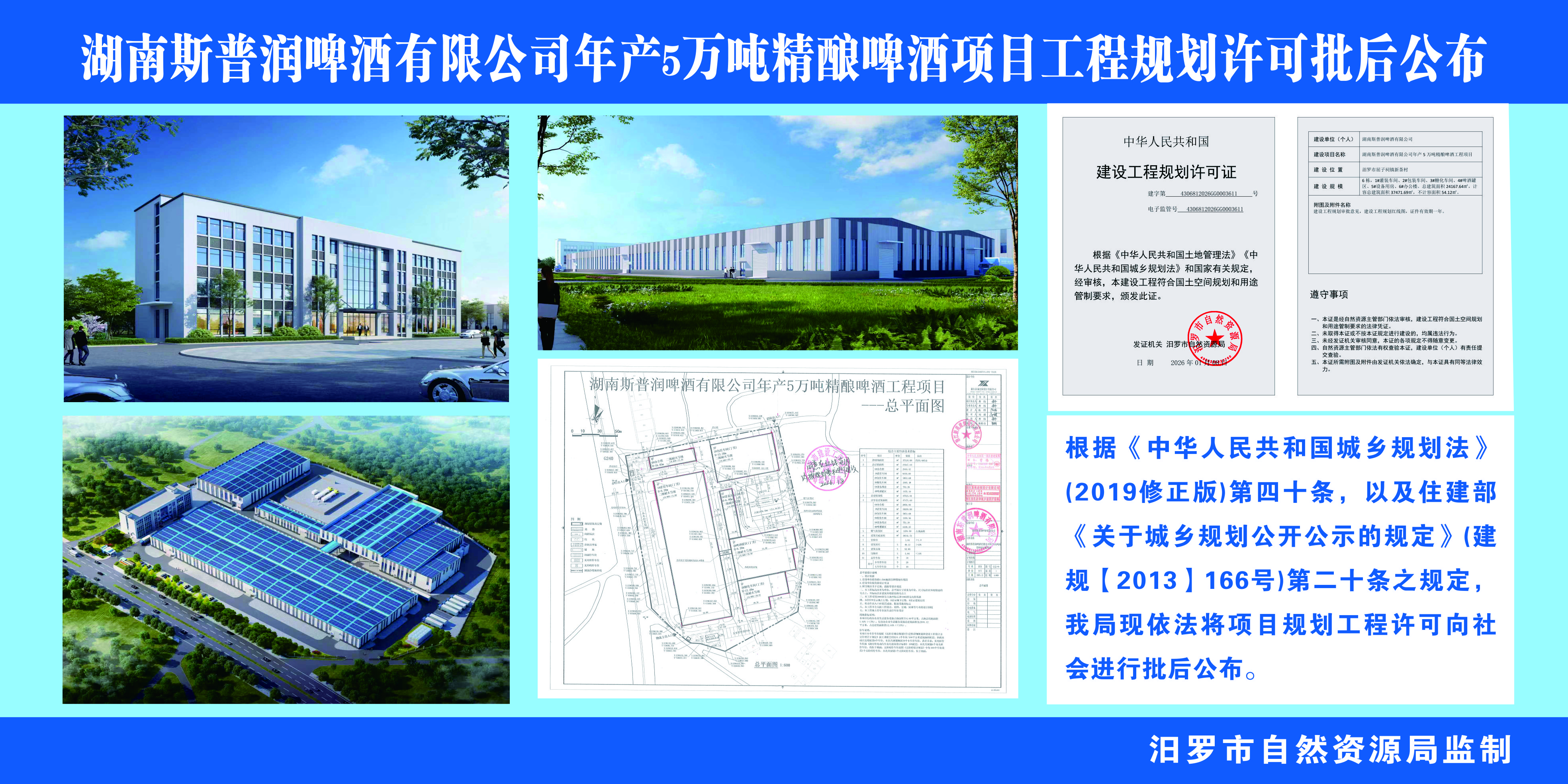 湖南斯普润啤酒有限公司年产5万吨精酿啤洒项目工程规划许可批后公布