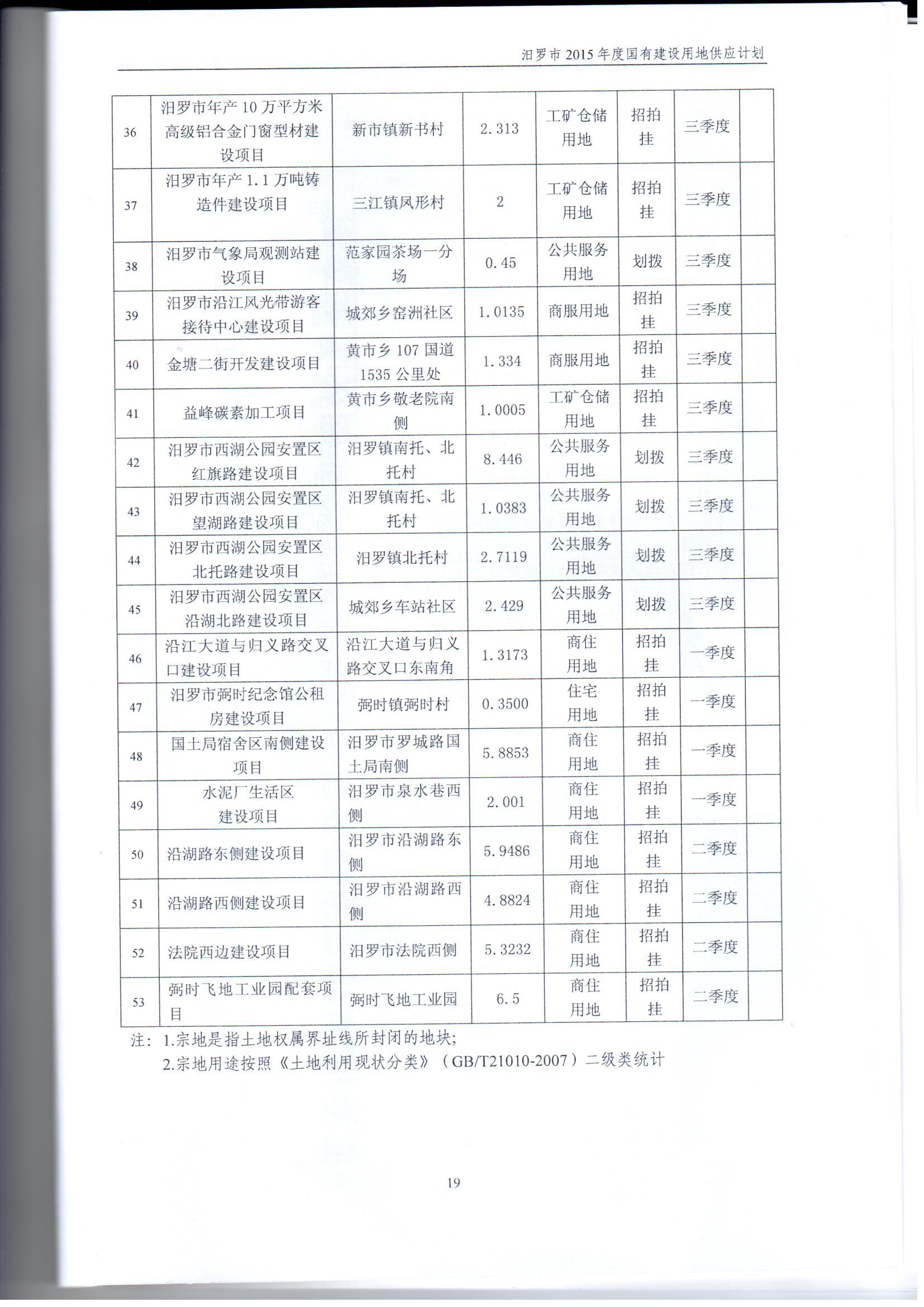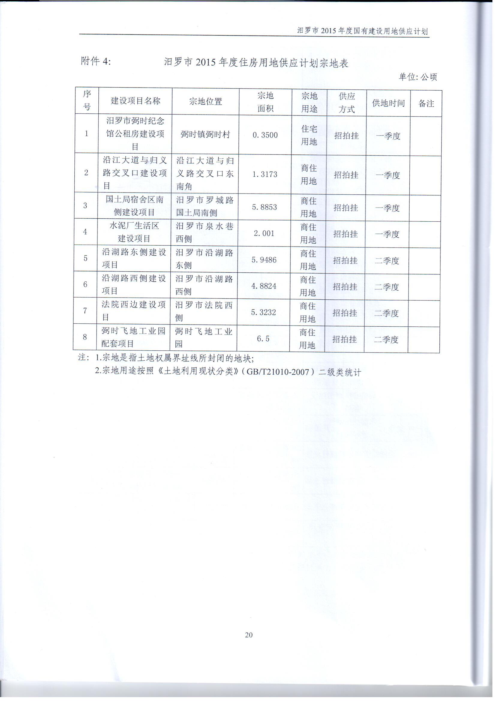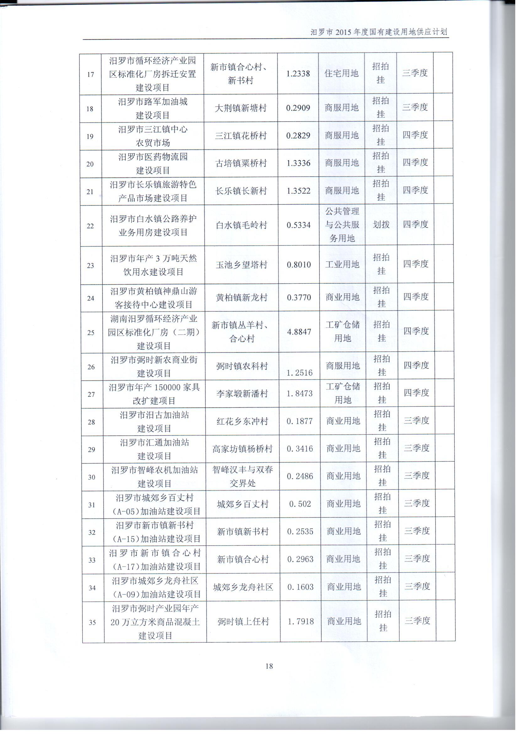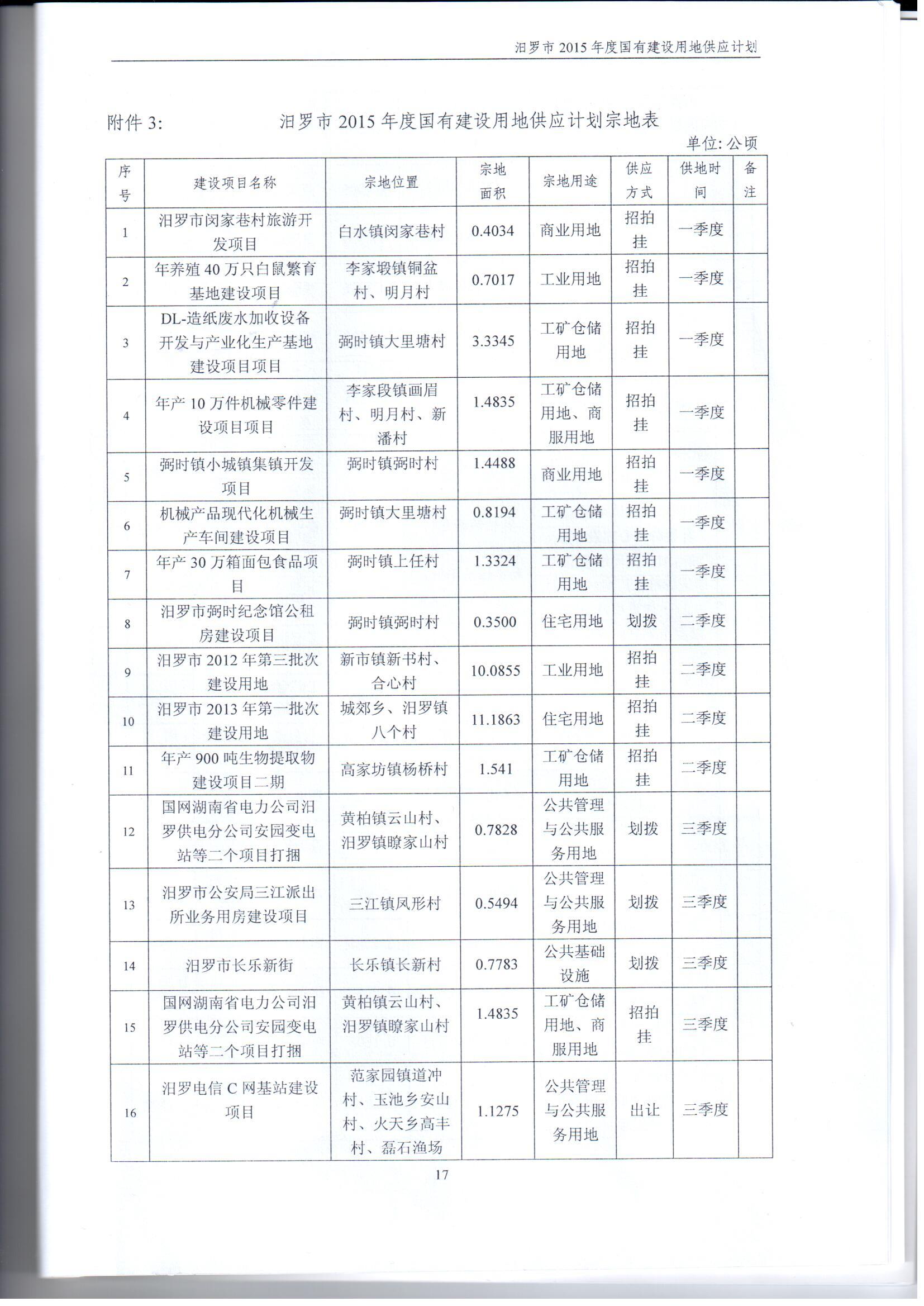 关于公布汨罗市2015年度国有建设用地供应计划的通知