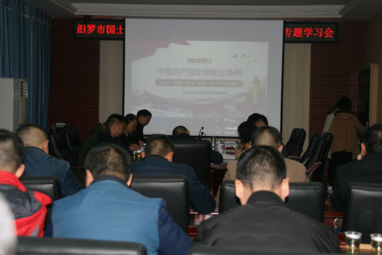 12月19日上午,汨罗市国土资源局召开新修订的《中国共产党纪律处分条例》专题学习会,全体班子成员和机关股室、二级机构、乡镇所负责人参加了学习培训。