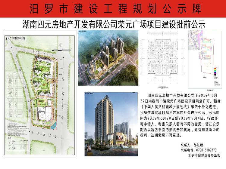 湖南四元房地产开发有限公司荣元广场项目建设批前公示