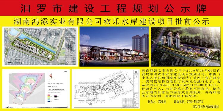 湖南鸿添实业有限公司欢乐水岸建设项目批前公示