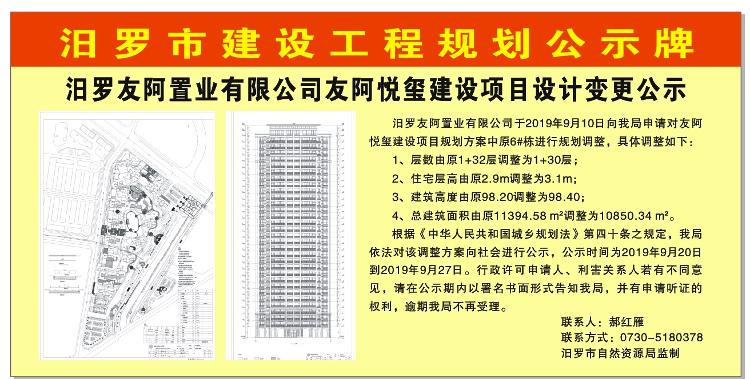 汨罗友阿置业有限公司友阿悦玺建设项目设计变更公示
