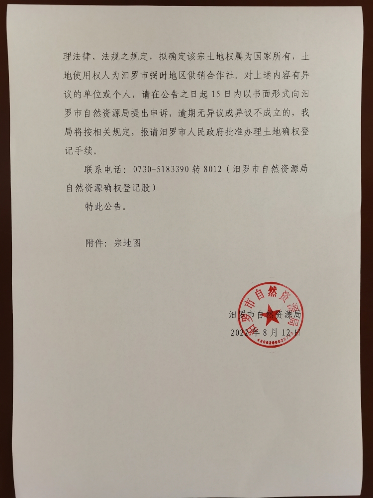 关于确定汨罗弼时地区供销社国有建设用地使用权的公告