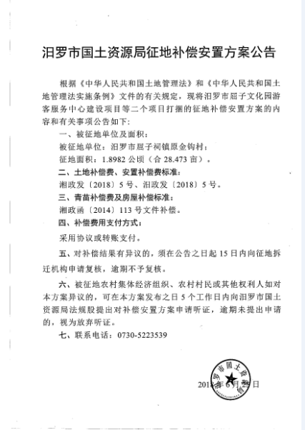 汨罗市屈子文化园游客服务中心建设项目等两个项目打包捆补偿安置公告
