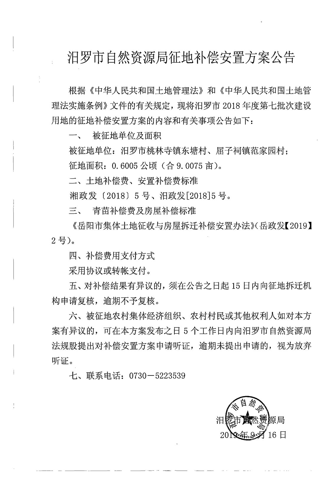 汨罗市2018年度第七批次建设用地 补偿安置公告