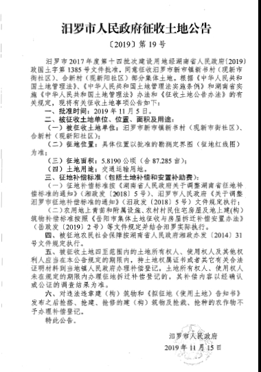 汨罗市2017年度第十四批次建设用地征收土地公告