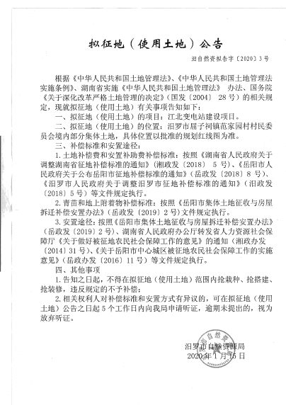 江北变电站建设项目拟征地公告