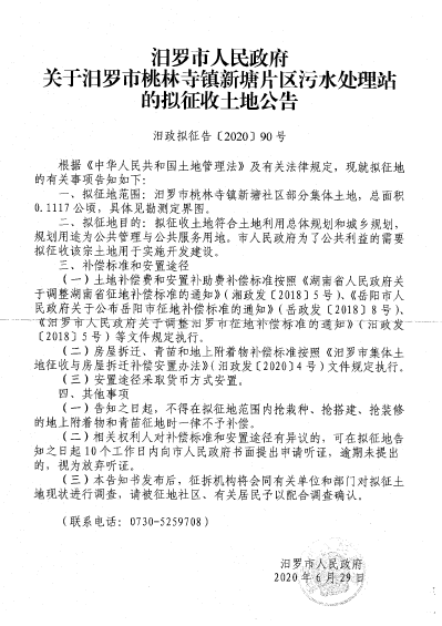 汨罗市桃林寺镇新塘片区污水处理站拟征地公告