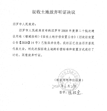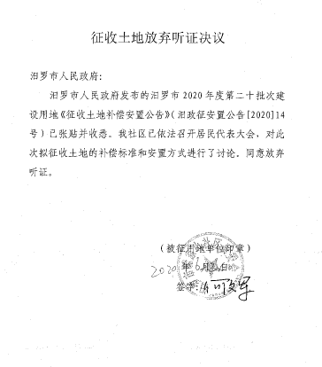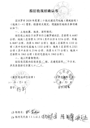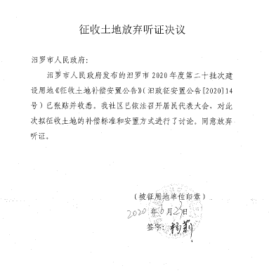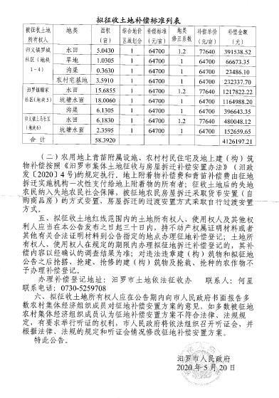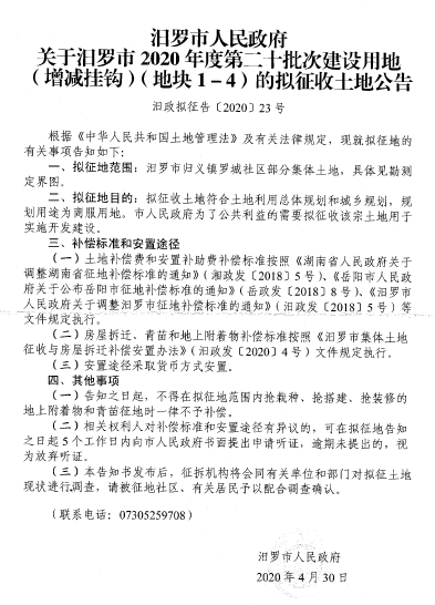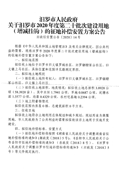 汨罗市2020年度第二十批次建设用地征地信息公开