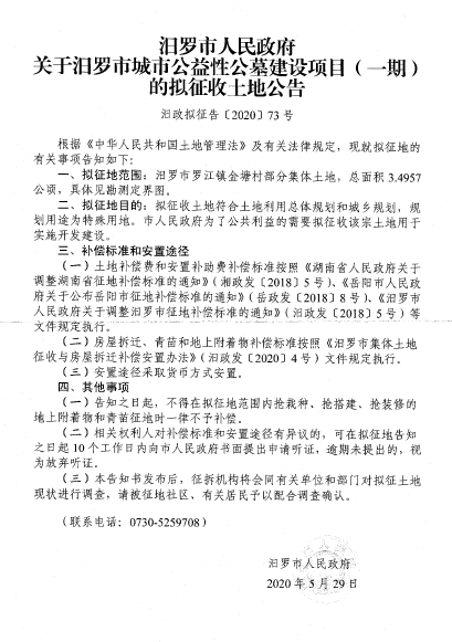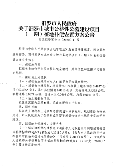 汨罗市城市公益性公墓建设项目(一期)征地信息公开