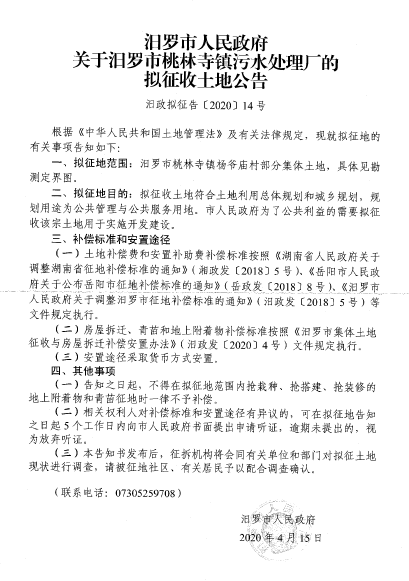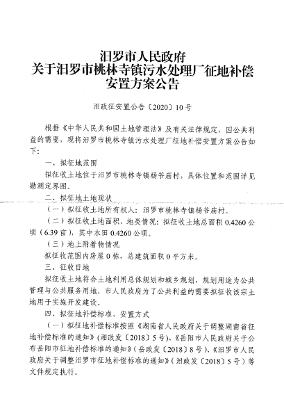 汨罗市桃林寺镇污水处理厂征地信息公开