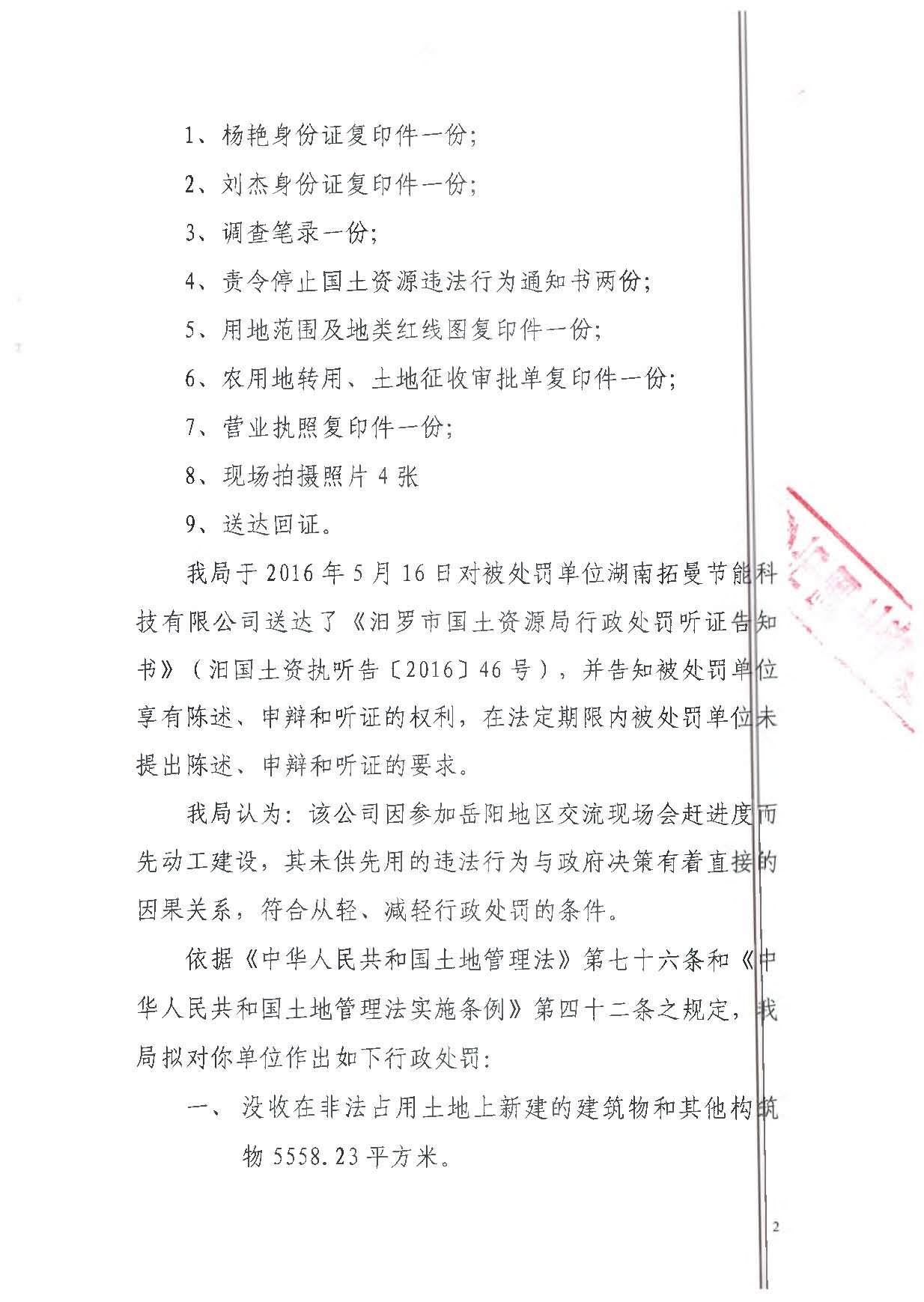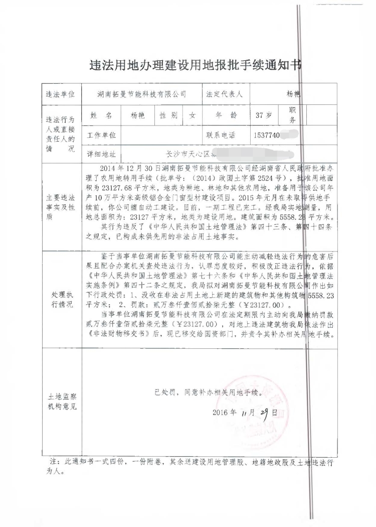 拓曼节能科技有限公司非法占用土地(未供先用)案
