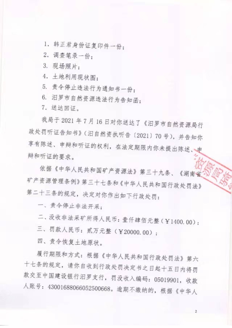 汨罗市自然资源局行政处罚决定书 汨自然资执罚(2021)43号