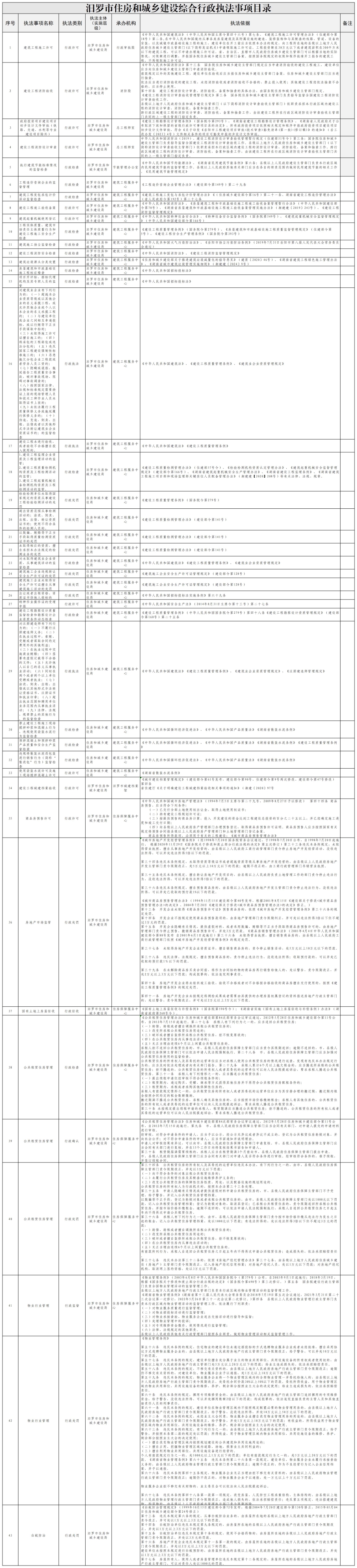 汨罗市住房和城乡建设综合行政执法事项目录公示