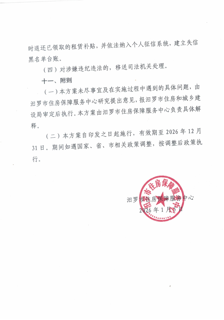 汨罗市2026年度公共租赁住房租赁补贴发放工作方案