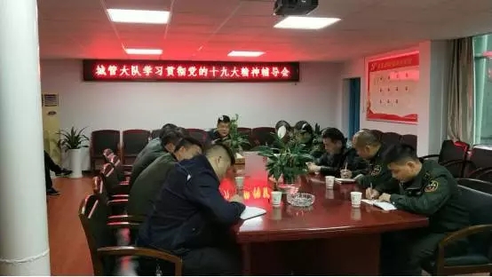11月13日下午,市城管大队党支部组织大队全体负责人召开十九大精神专题辅导会,集中学习党的十九大精神,迅速把思想和行动统一到十九大精神上来,主动对照中国特色社会主义进入新时代的目标要求,在市容管理、队伍建设、拆违治乱等方面狠下功夫,严格依法行政,文明执法,全力推动我市城区严管重罚工作。