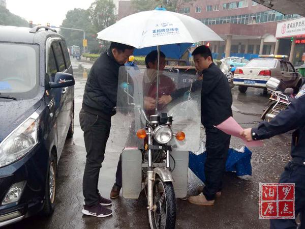 市三创办牵头,城区客运市场整治领导小组召集公安、交通、交警、城管、工商、安监等多家单位,开展取缔摩托车伞具联合执法专项行动。联合执法组先后来到宏辉商行、亚波摩托修配、汨罗市摩托车配件中心、桥头摩配、黄峰摩托修配、骆记电动车修配等门店,将取缔伞具告全市人民一封信交给店主,要求其在上签字,留下联系方式,并保证不再销售安装摩托车、电动车伞具,如若违反,将严厉处罚。今天下雨,城区路面“打伞”状况增多,执法队员没有停下脚步,凡发现摩托车电动车“打伞”,一律予以收缴,并留下公开信。
