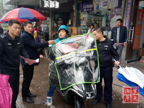 12月13日,取缔摩托车伞具专项行动小组冒雨来到城区各大摩托车、电动车经营商行,再次上门告知店主不得贩卖摩托车伞具,违者将严厉处罚,以此堵住摩托车非法“打伞” 源头。