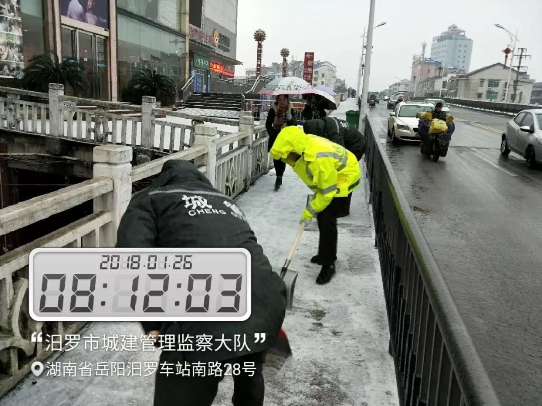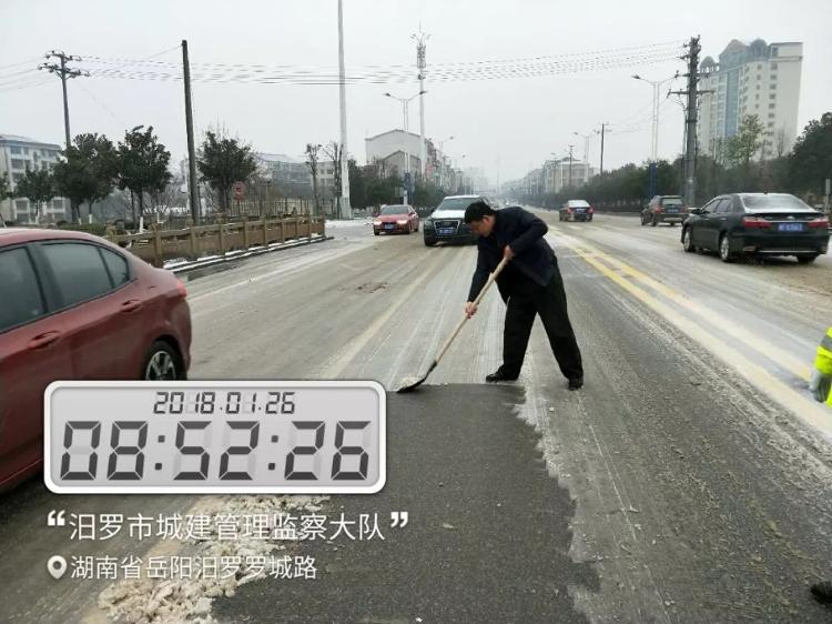 这次雪籽下的时间长,结冰雪面积大,市民的出行很不方便。为了保证大家的安全出行,保障各项工作的有序开展,全体城管工作人员也是拼啦,新年瑞雪扮靓了汨罗大地,雪不停我们的工作就不停~