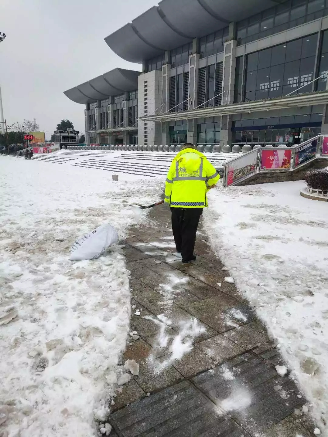 一大早,所有城管全体队员,不畏严寒,积极投身到扫雪队伍中。大家齐心协力,配合默契,一起挥舞着铁锹和扫帚,有的铲,有的扫,有的不断泼洒工业盐,干的热火朝天,忙碌的身影在皑皑白雪中构成了一道亮丽的风景线。虽然室外温度很低,但大家劳动的热情和团结的力量让这个冬日变得格外温暖。