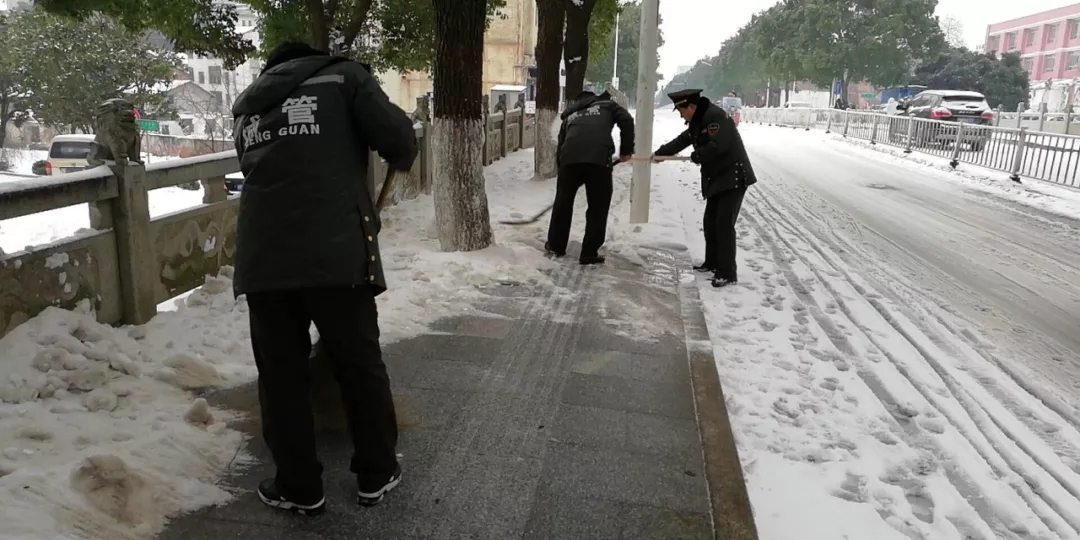 在汨罗城管的努力下,积雪在各路段早高峰到来之前很快被打扫干净,保障了道路畅通,为周边居民营造了安全、便利的出行环境。