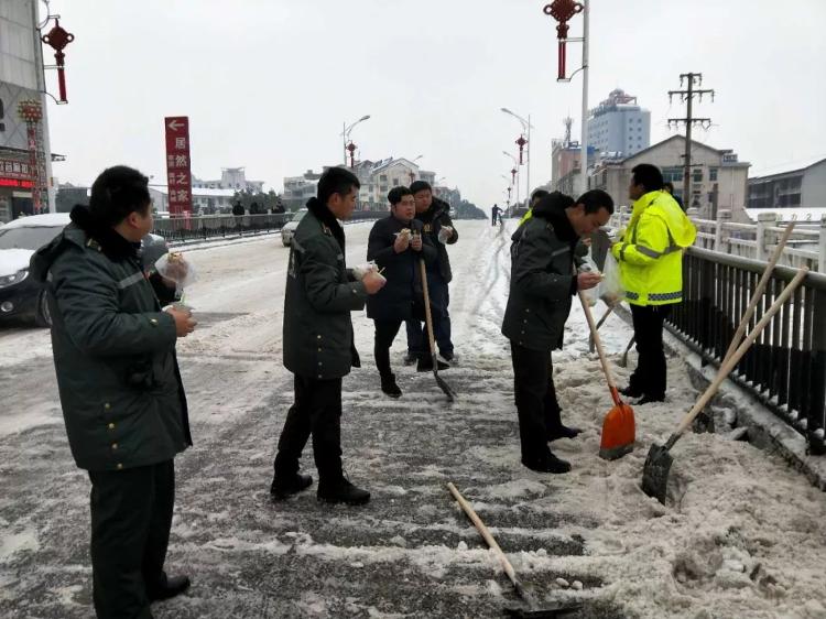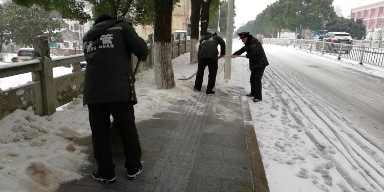 1月28日,首场冬雪降临汨罗,整个汨罗市银装素裹。喧闹的城市经过了冬雪的洗礼,空气格外清新。皑皑白雪给大家带来惊喜和欢乐的同时,也给居民的生活和出行带来了诸多不便。为及时清除积雪,确保居民出行安全,汨罗市城市管理行政执法大队,开始行动起来,上街除雪,为保一方畅通尽职尽责。