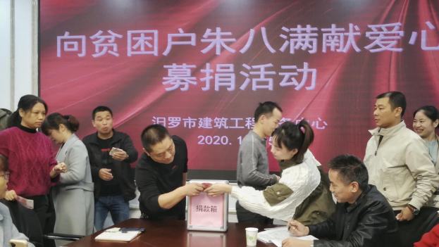 了解情况后,建工中心班子马上向全体职工发起捐助倡议,帮助贫困户渡过难关,干职工积极响应号召,筹集职工爱心款6600元、单位爱心帮扶款5000元,共11600元。随后,建工负责人又联系爱心企业——湖南君尚市政工程有限公司募集爱心善款1万元,并及时将款项送至朱八满家中。