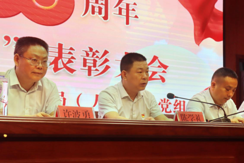 局党组成员许波勇主持大会,副局长黄魁宣读了光荣榜,住建局机关老年支部有柳子范、马国斌、刘建龙、钟晖等同志荣获优秀党员称号,并接受了局党组颁奖。光荣在党50年的老同志柳子范、马国斌、何建平、杨君仲、宋绍芳、廖国文、袁国干、李久雁、李克强、徐启煌、曾令如、游良瑛等十二人分別上台接受“光荣在党50年”授牌!全体与会人员和新党员一道重温入党誓词!局党组书记陈学礼为大会作主题报告,在回顾党的百年光辉历史的同时,希望全体党员永远跟党走,竭尽全力工作为党旗添彩!