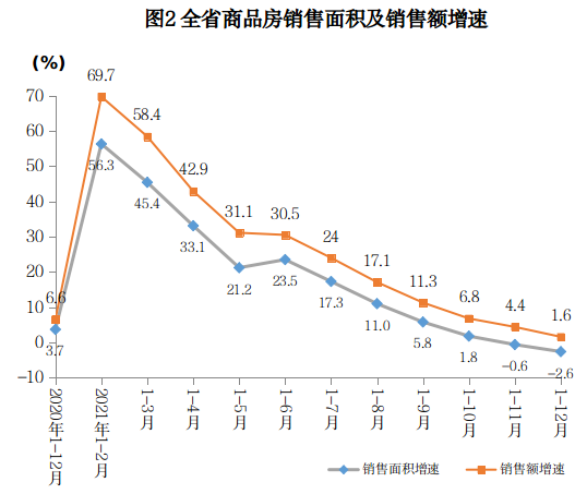 2021年, 全省认真贯彻落实国家房地产调控政策,继续坚持“房住不炒”的政策定位,坚持稳房价、稳地价、稳预期,分类指导、精准施策,不断加强房地产市场供需双向调节,房地产市场运行整体保持平稳态势。