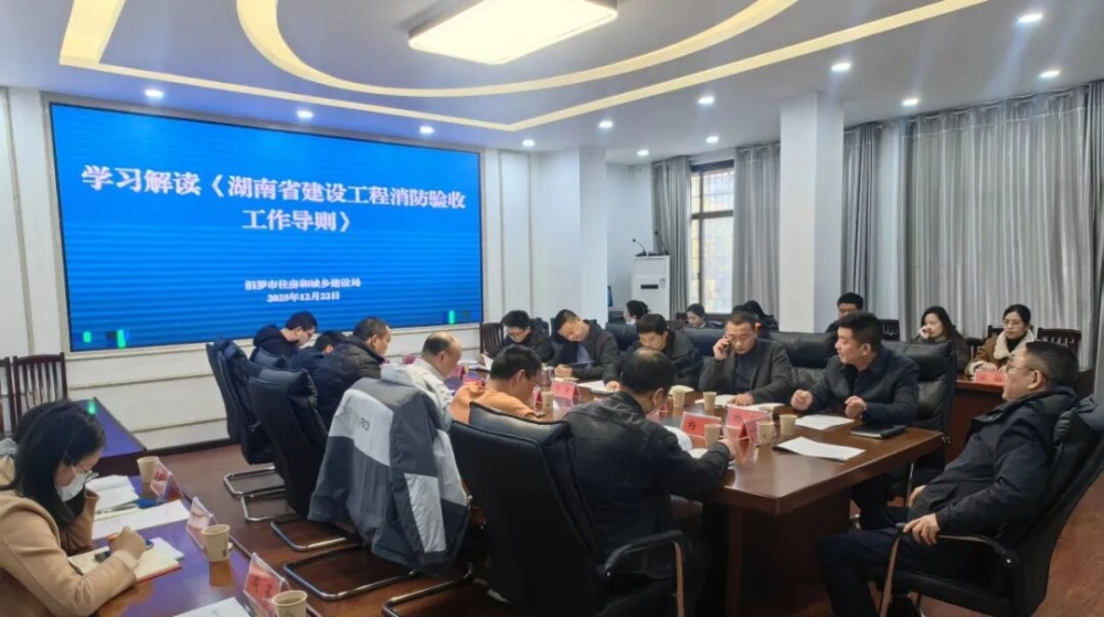 为深入贯彻落实省级最新政策要求,切实提升我市建设工程消防验收与施工许可管理的专业化、规范化水平,确保各项政策规定落到实处,12月22日下午,汨罗市住房和城乡建设局组织召开了专题培训会议,集中学习《湖南省建设工程消防验收工作导则》与《湖南省房屋建筑和市政工程施工许可管理实施细则》。住建局、建筑工程服务中心负责同志及部分消防施工单位、消防技术服务机构、项目资料员参加培训。