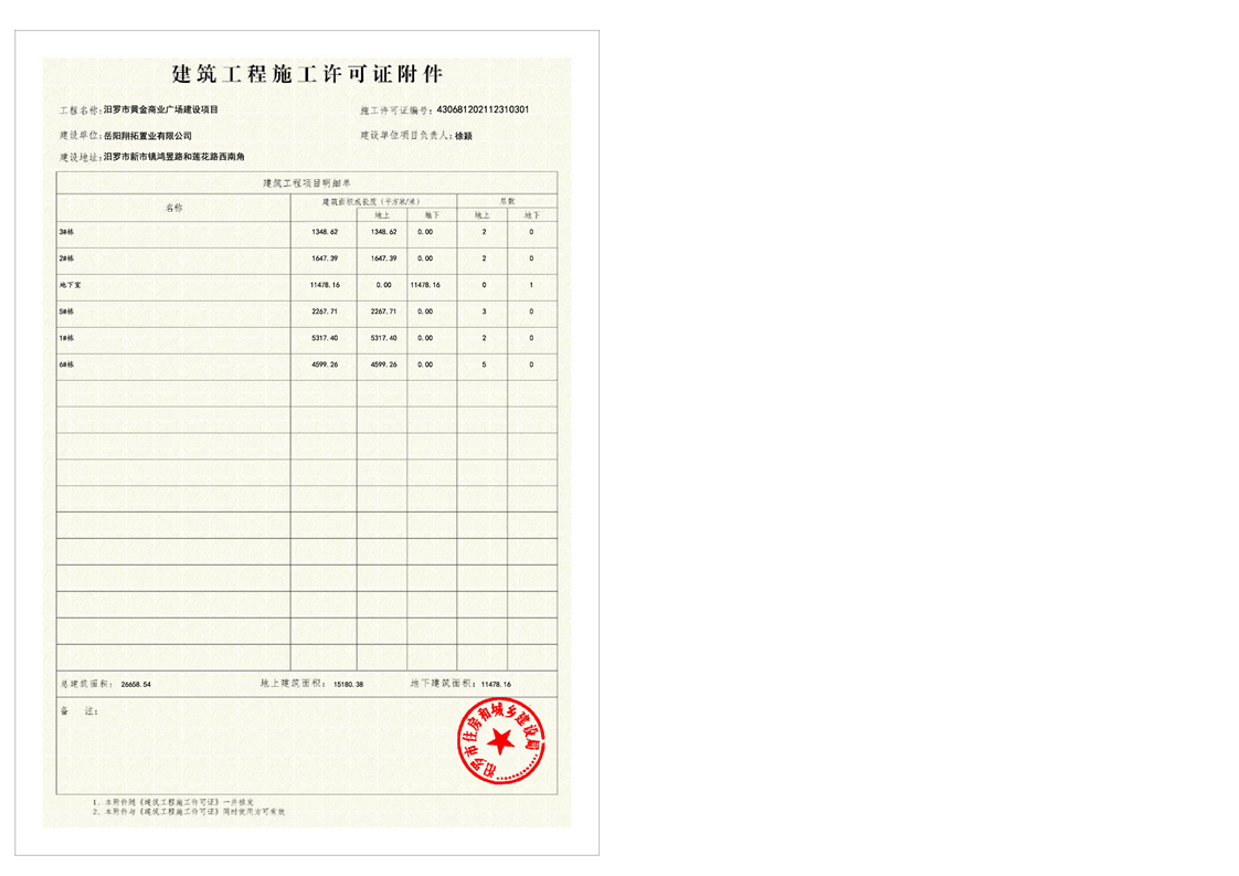 汨罗市黄金商业广场建设项目施工许可证