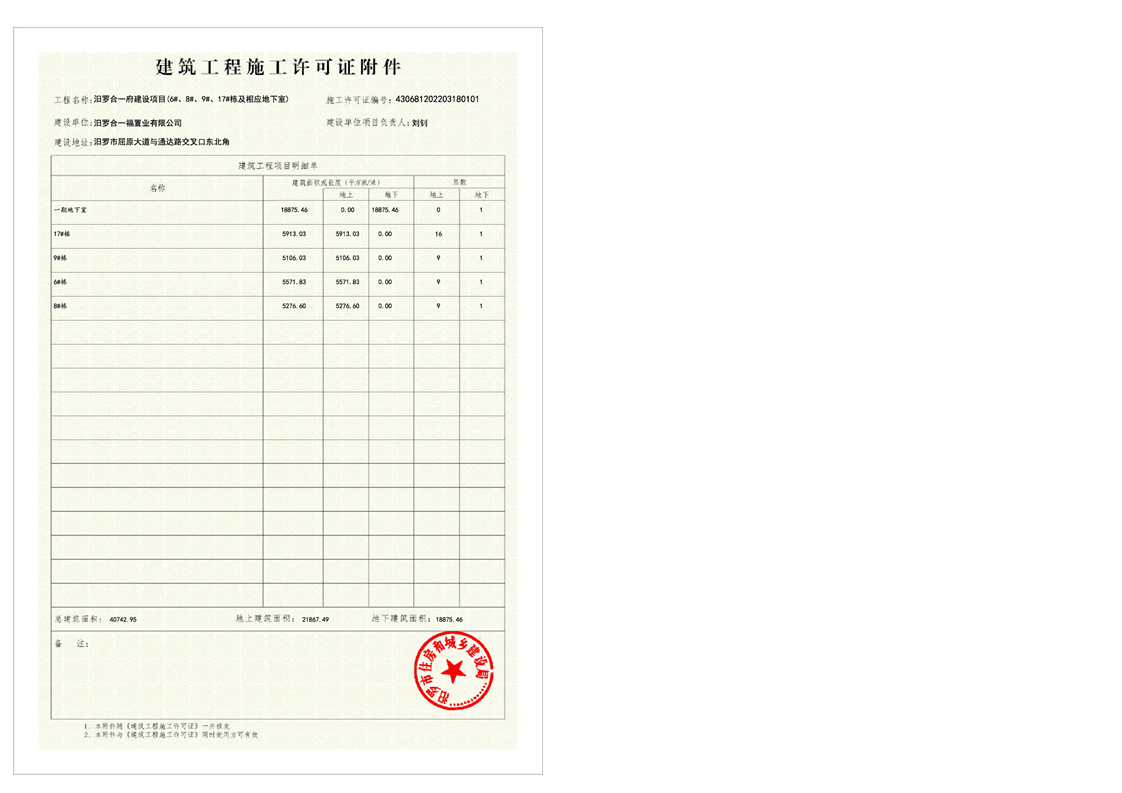 汨罗合一府建设项目(6#、8#、9#、17#栋及相应地下室)施工许可证
